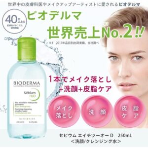 Sản phẩm trong hình là Bioderma Sébium H2O(ビオデルマ セビウム H2O D 500l) một loại nước tẩy trang micellar dành cho da dầu và hỗn hợp dầu. Dưới đây là một số thông tin chi tiết về sản phẩm: