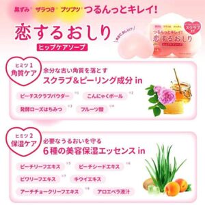 Sản phẩm 恋するおしり (Koi Suru Oshiri), hay còn gọi là ヒップケアソープ (Hip Care Soap), là một loại xà phòng chăm sóc vùng da mông đến từ Nhật Bản. Sản phẩm này được thiết kế để cải thiện tình trạng da mông, giúp làm sạch, loại bỏ bụi bẩn và tế bào chết, mang lại làn da mềm mịn, sáng màu và không còn tình trạng khô ráp hay thâm sạm.